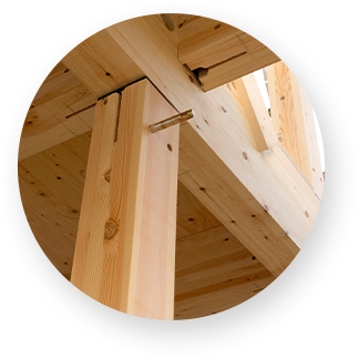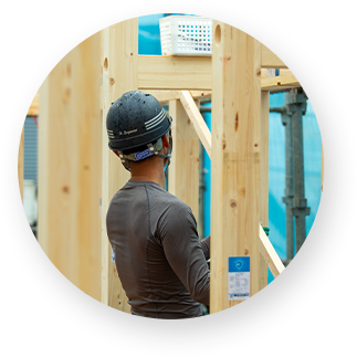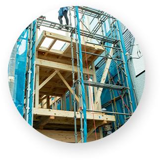 住宅の基礎である土台を造る基礎工事業からバトンを受け取り、私たち躯体工事業者が柱や屋根などの構造部分を造りあげる。